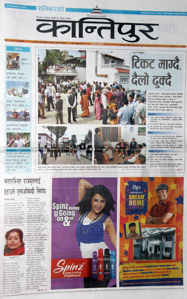 एमाओवादीले मधेसमा आन्तरिक विवाद झेल्नु परेको राजधानीले मुख्य खबर बनाएको छ भने कांग्रेसमा आत्मघाती खेल सुरु भएको नागरिक दैनिकमा खबर छ ।